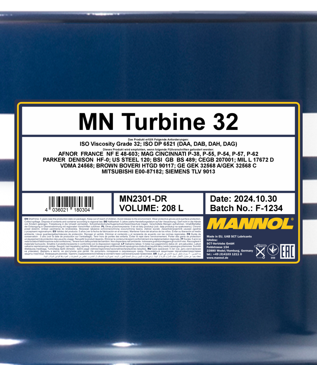 Hochwertiges Turbinenöl (Umlauföl) mit einem verlängerten Wechselzeitraum entwickelt für die Schmierung und Kühlung von Lagern in stationären Dampf und Wasserturbinen bei normalen und erhöhten Temperaturen und hergestellt auf einer hochreinen Basis.
