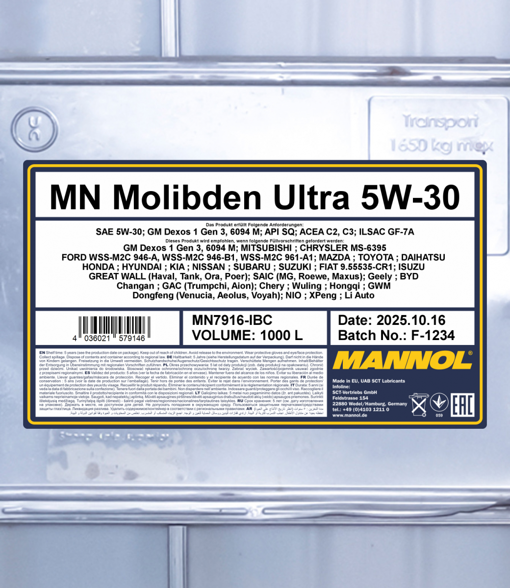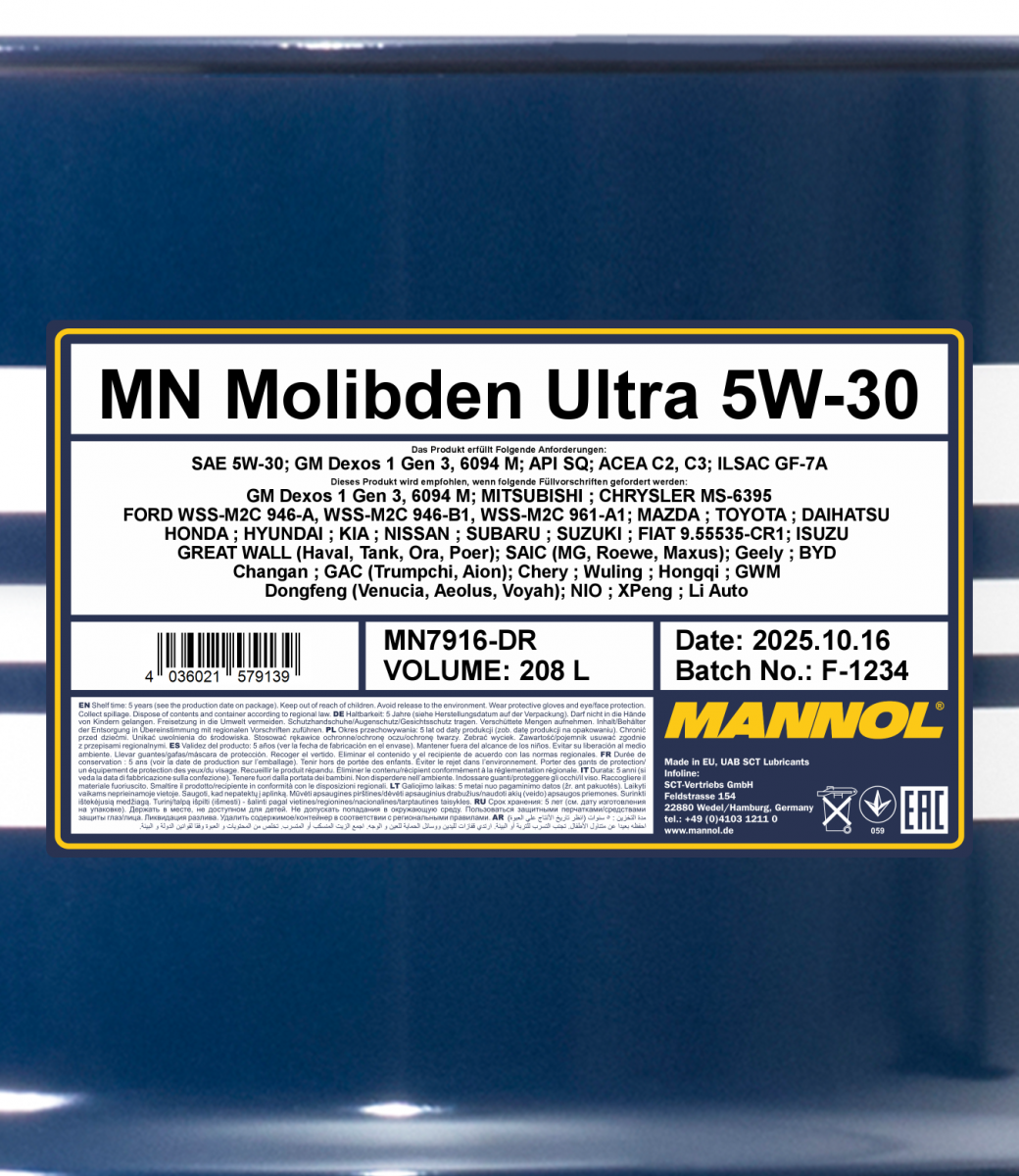 • Die synthetische Basis und der Molybdän-Komplex stellen einen leichten Kaltstart des Motors dank außergewöhnlicher Drehfruedigkeit und Pumpbarkeit sicher, wodurch der Startverschleiß deutlich reduziert wird;
