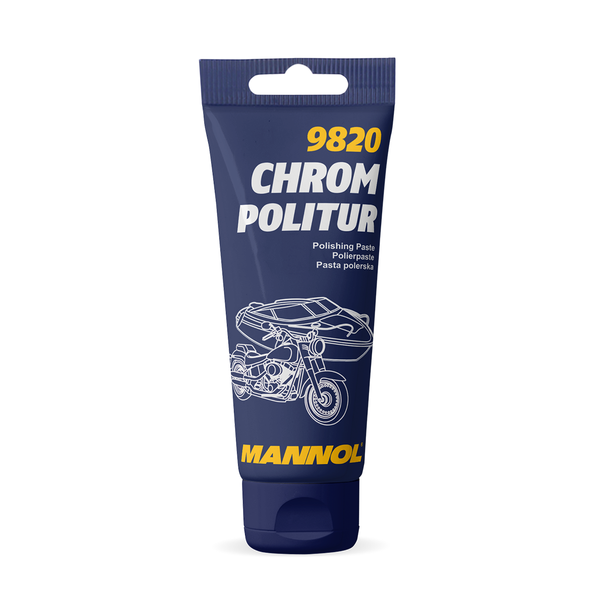 Chrom Politur – vernis pour toutes les surfaces chromées en ingénierie et dans la vie quotidienne (plombage). Convient pour le nettoyage et le polissage: aciers inoxydables, alliages d'aluminium et de cuivre, ainsi que des alliages contenant de l'étain.