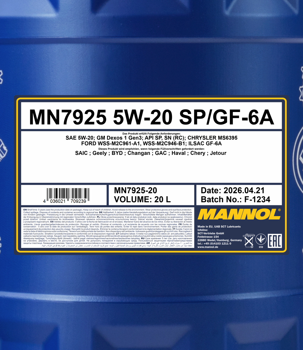 Przeznaczony do wszystkich silników benzynowych i diesla w samochodach osobowych, lekkich pojazdach terenowych, vanach i lekkich samochodach dostawczych oraz SUV i lekkich furgonetkach wszędzie tam, gdzie wymagany jest poziom lepkości API SPF-6A/GM Dexos 1 Gen3 oraz niższe poziomy tej lepkości.
