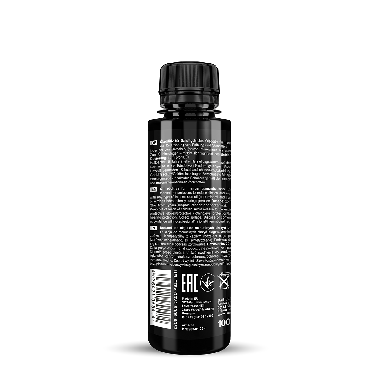 Application: Add to transmission oil – mixes independently during operation. Dosage: One bottle of 100 ml per 4 L of oil.