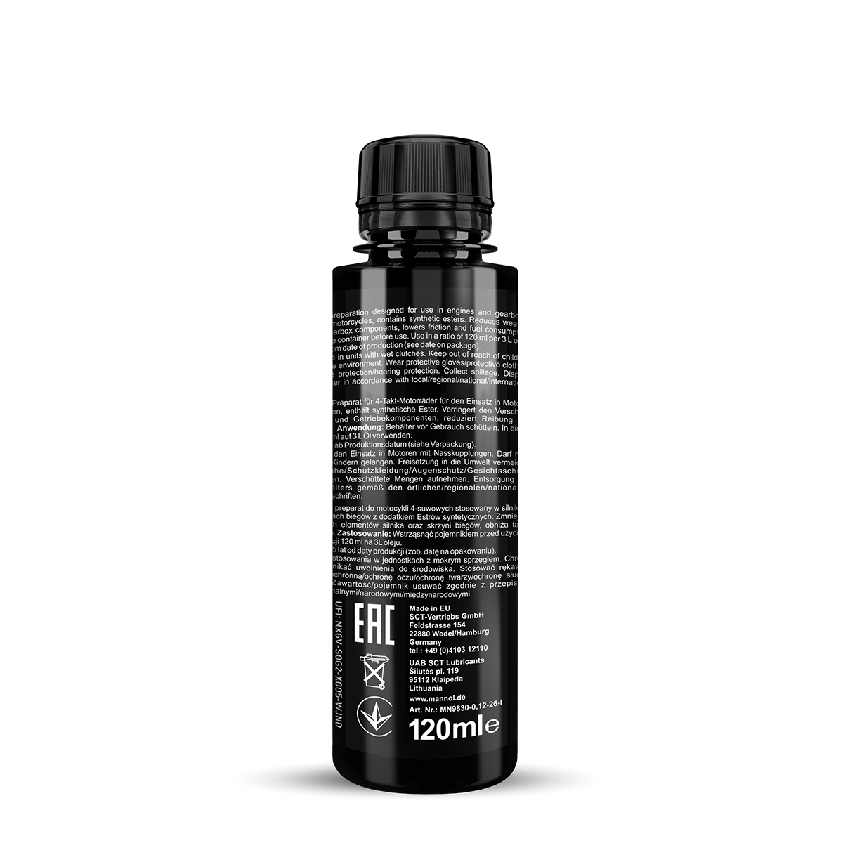 Инновационный препарат для 4-тактных мотоциклов для использования в двигателях и коробках передач, содержит синтетические эфиры. Снижает износ важных компонентов двигателя и коробки передач, уменьшает трение и расход топлива.